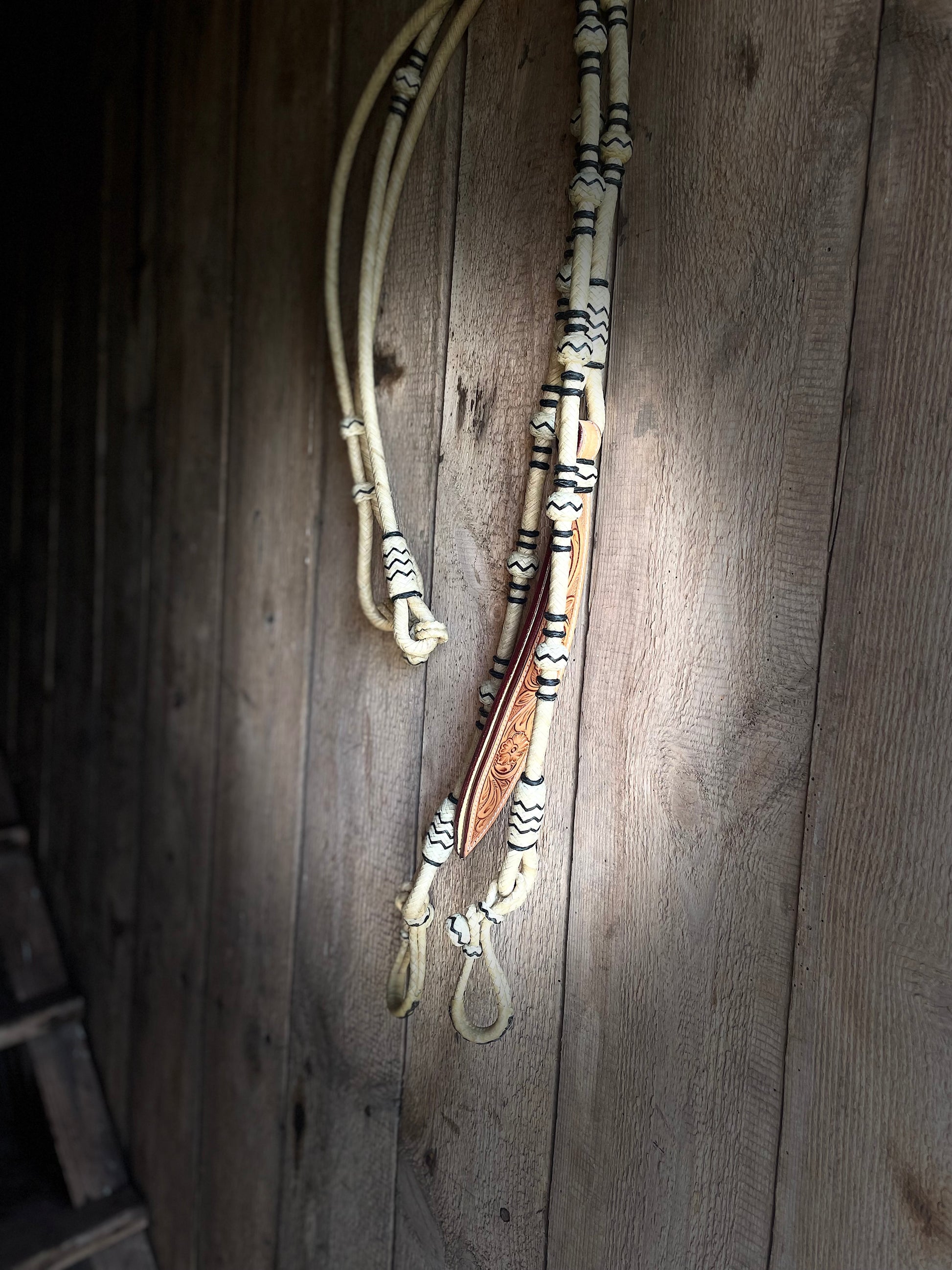 - schwarz verzierte Rohhautbuttons für eine gute Balance