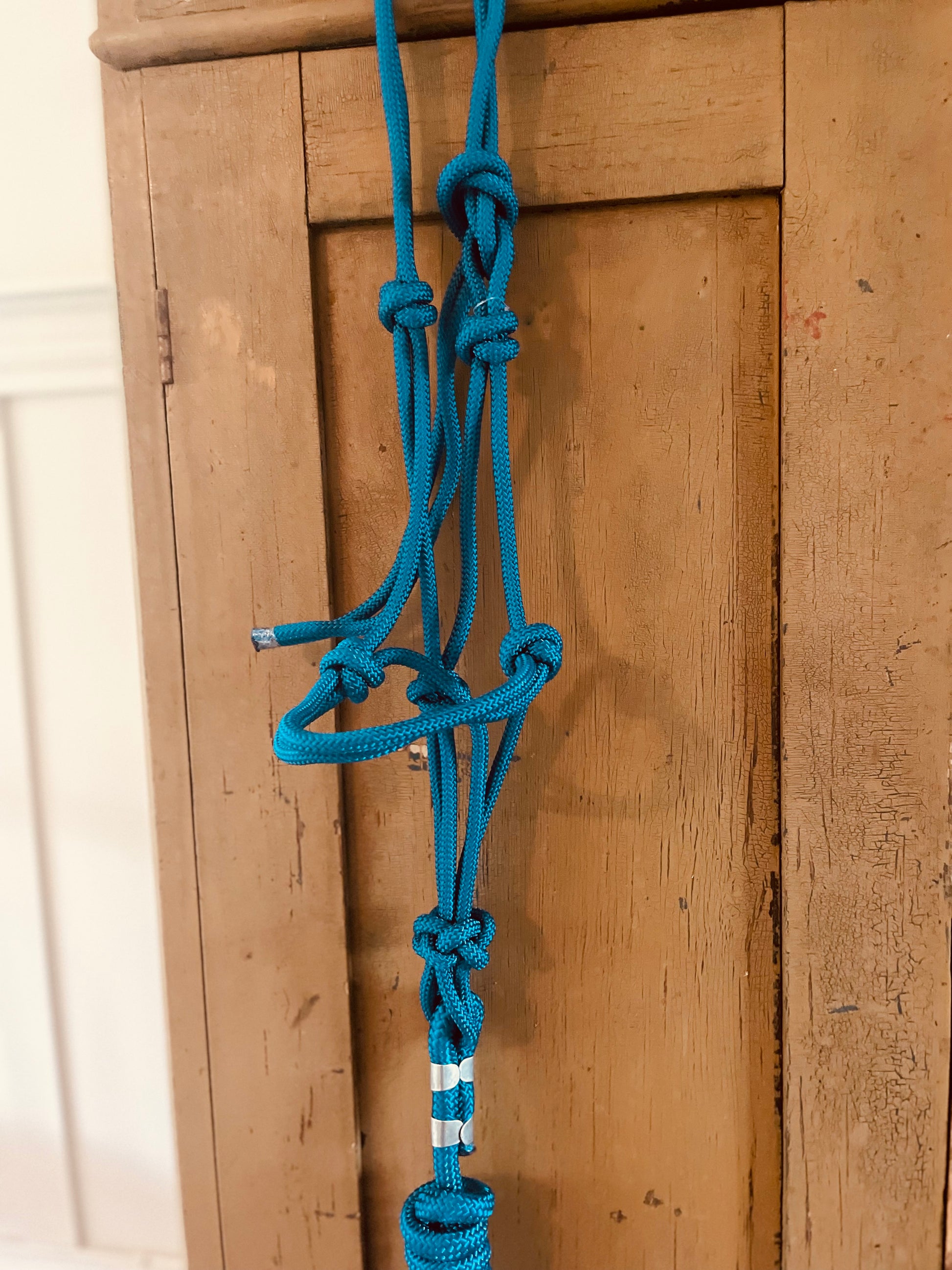 WWR Rope halter repgrimma mörk turkos blå grön med grimskaft