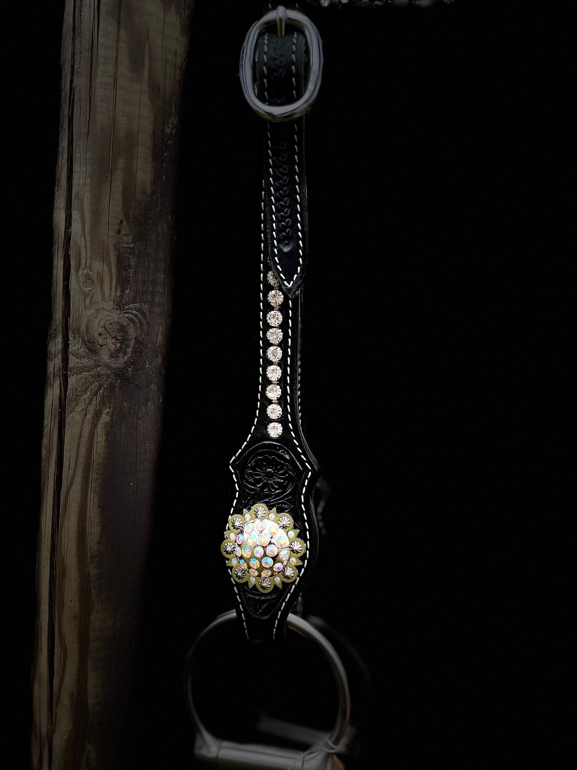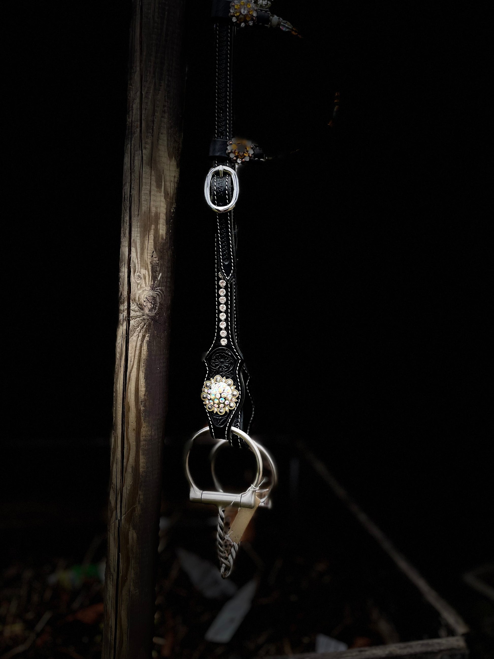 ett snyggt träns med gula stenar och diamant cheek och diamant chonchos
